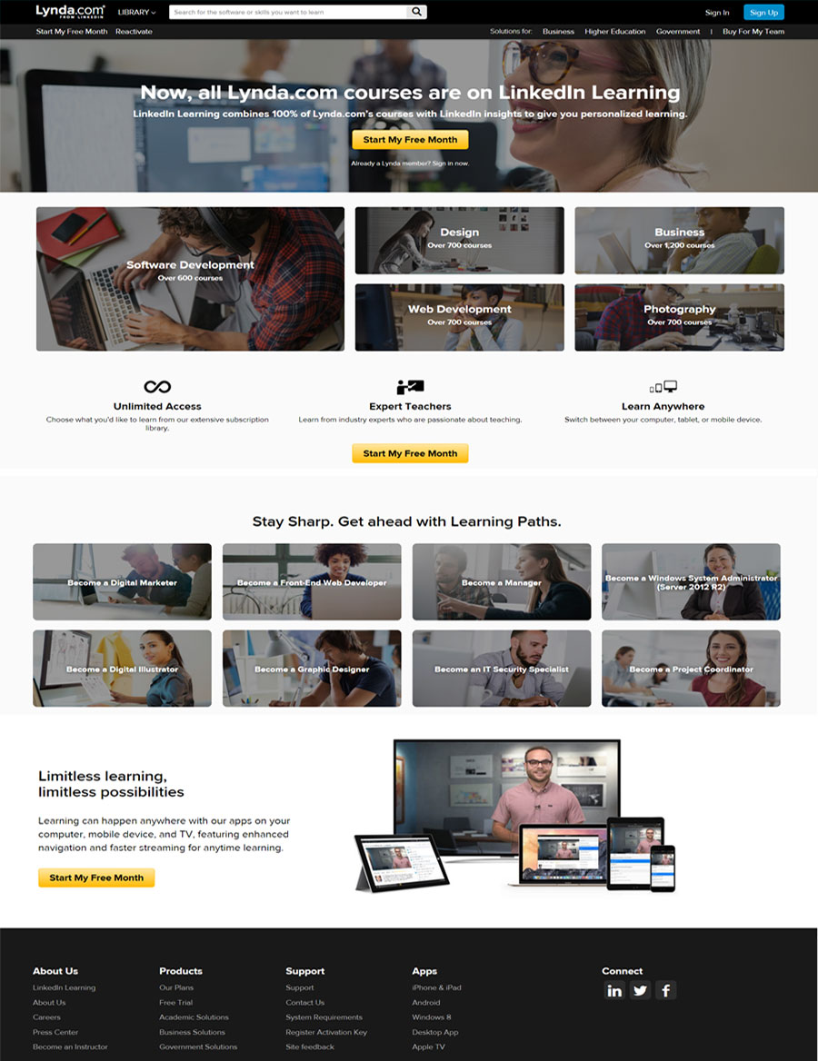 For 20 years, Lynda.com has helped students, leaders, IT and design pros, project managers—anyone in any role—develop software, creative, and business skills.